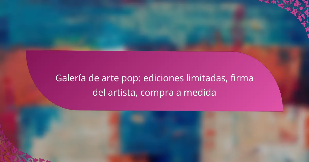 En una galería de arte pop, las ediciones limitadas ofrecen obras exclusivas que son altamente valoradas por coleccionistas. La autenticación de la firma del artista es crucial para garantizar la autenticidad y el valor de cada pieza. Además, las opciones de compra a medida permiten a los clientes personalizar obras según sus gustos y preferencias, haciendo de cada adquisición una experiencia única.